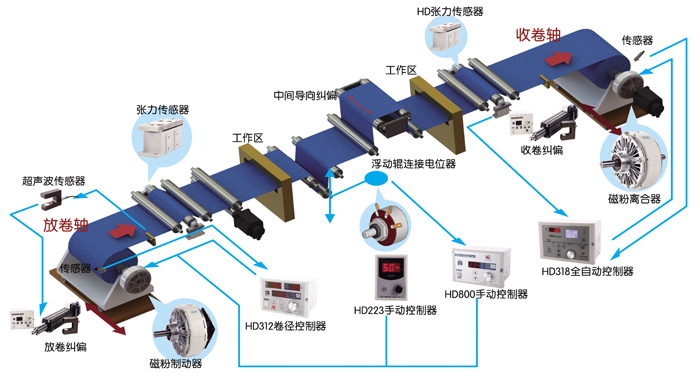 磁粉制動器、離合器、使用時盡量采用聯軸節式的聯接方式,不支持使用徑向承受主傳動的聯接傳動方式。如齒輪皮帶輪等,如確需用,齒輪皮帶輪傳動建議軸向增加支承。磁粉制動器、離合器用直流電作激磁電源。PSN功率放大器以及全自動張力控制器為其專配的控制電源。